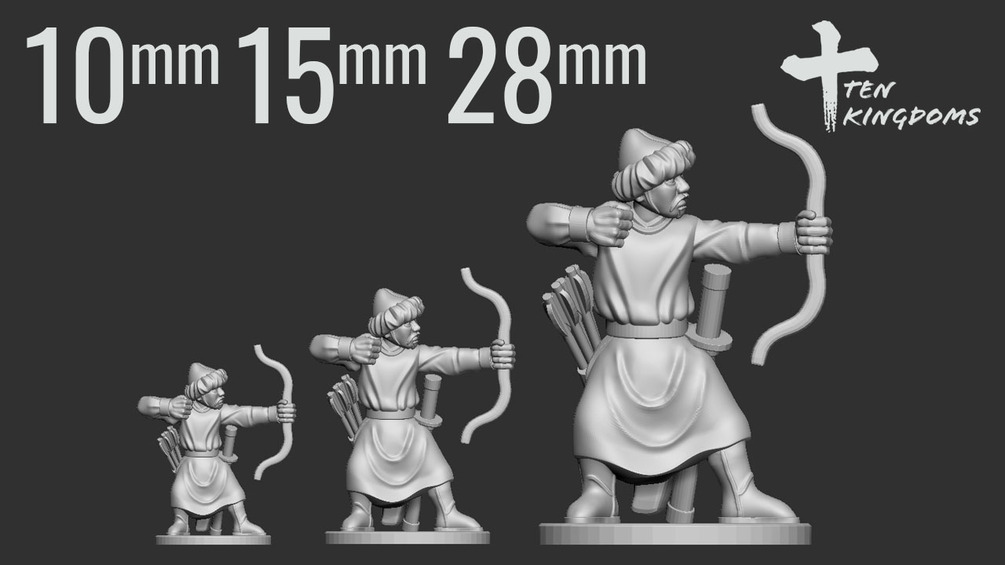 You'll get STL files for 1 Khitan Archer Foot figure in 10mm, 15mm and 28mm