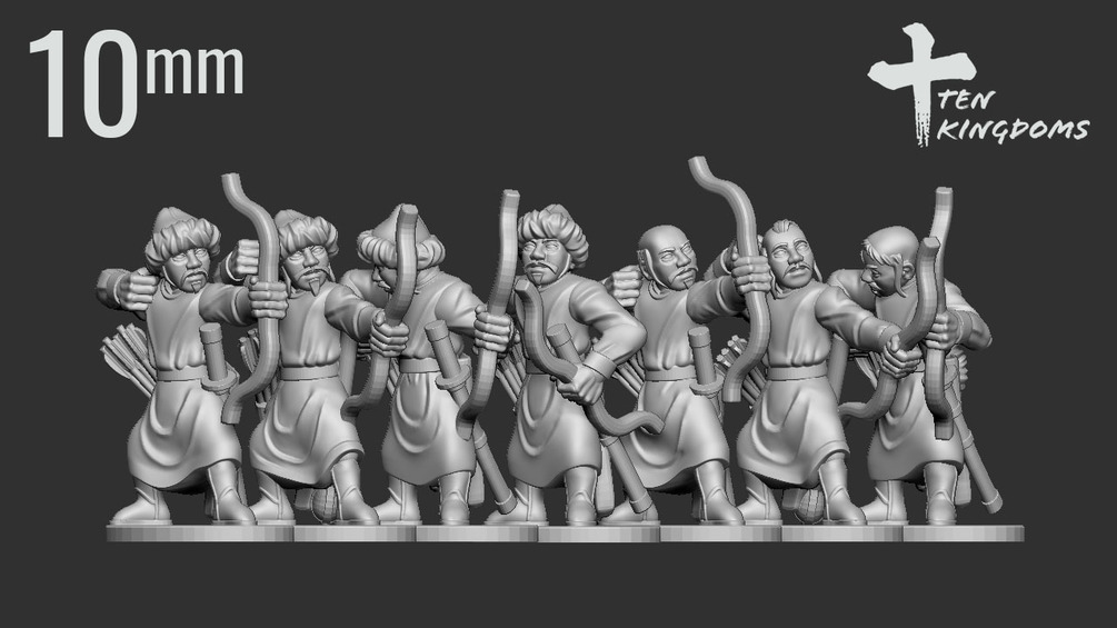You'll get STL files for 8 Khitan Archer Foot figures.